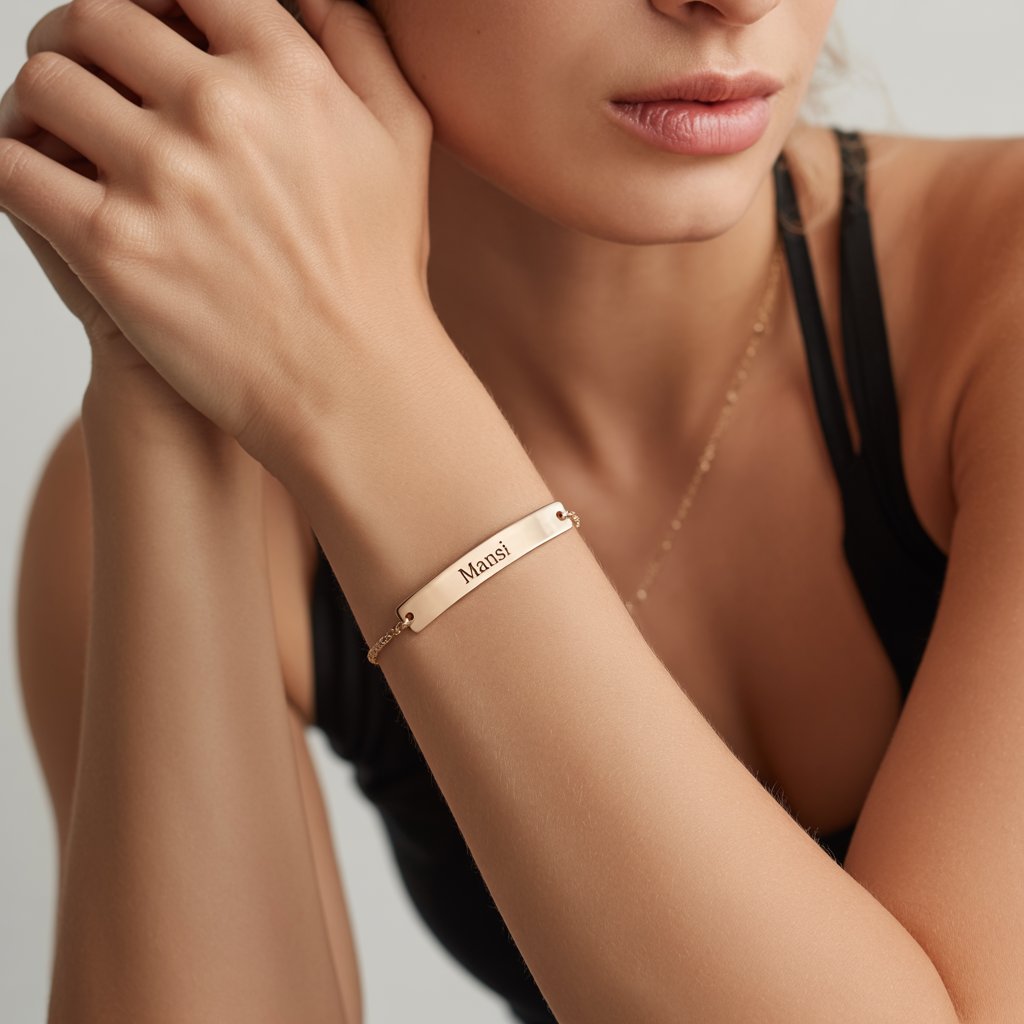 Customizable Minimalist Gold Bar Bracelet for Women Stainless Steel 316L