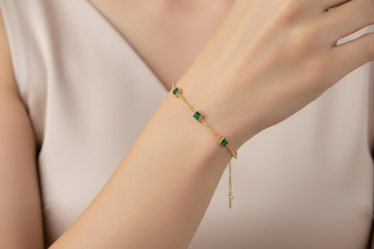 This green zircon bracelet gold plated is more than just a piece of jewellery; it's an expression of individual style and elegance. It's suitable for gifting on birthdays, anniversaries, or any unique occasion. Explore the charm and quality of Lustre of Love's offerings and wear something that truly stands out.